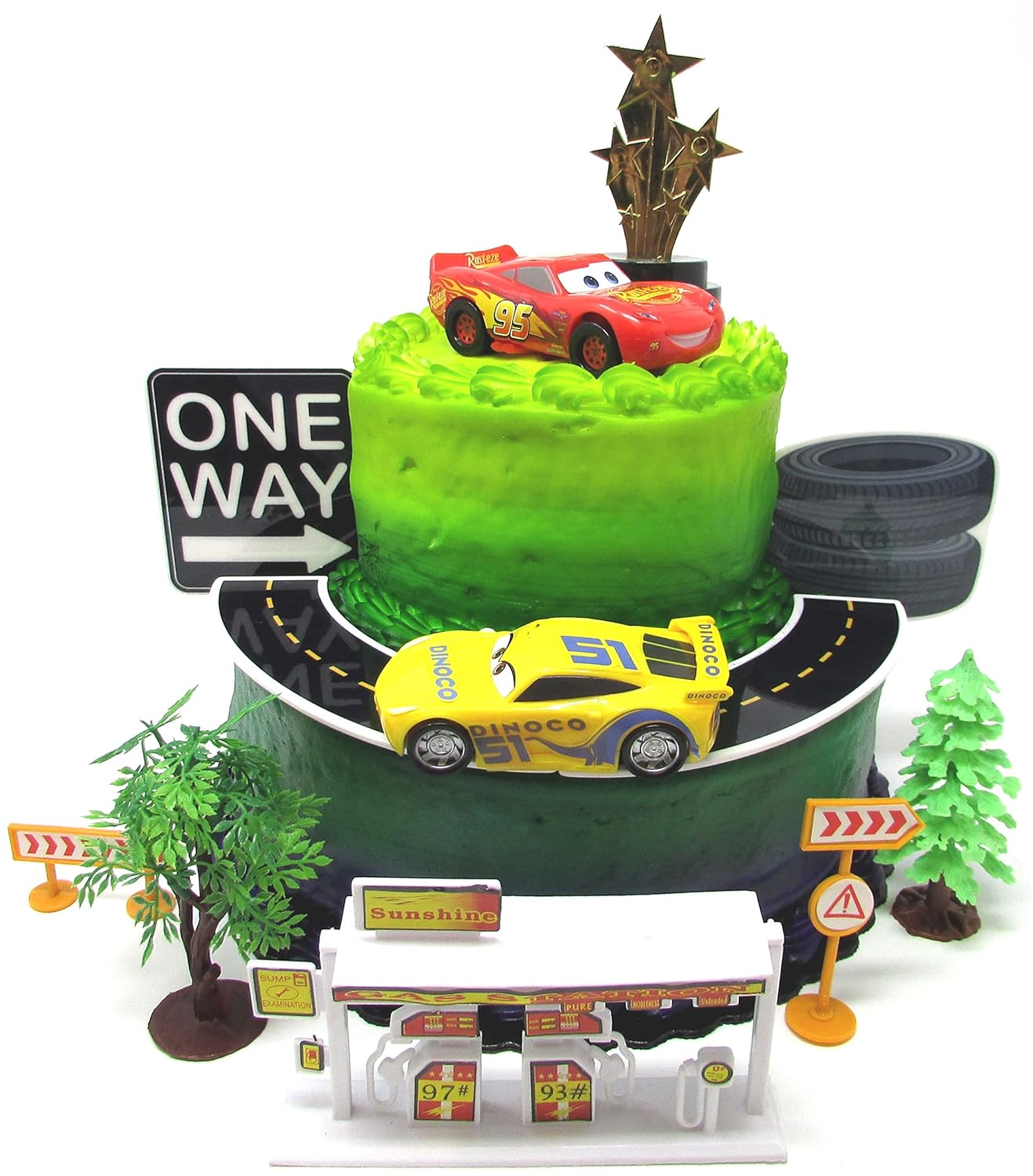 Cars 3 Birthday Cake Topper Set Featuring Lightning Mcqueen And